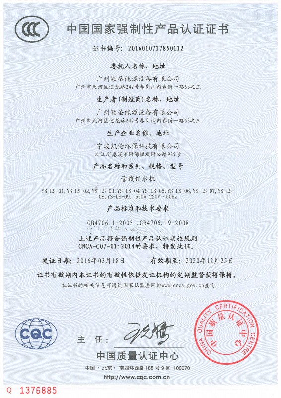 中国国家强制性产品认证证书